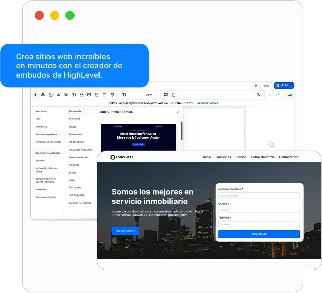 ¡Captura leads usando nuestras landing pages, encuestas, formularios, calendarios, sistema de llamadas entrantes y mucho más!
